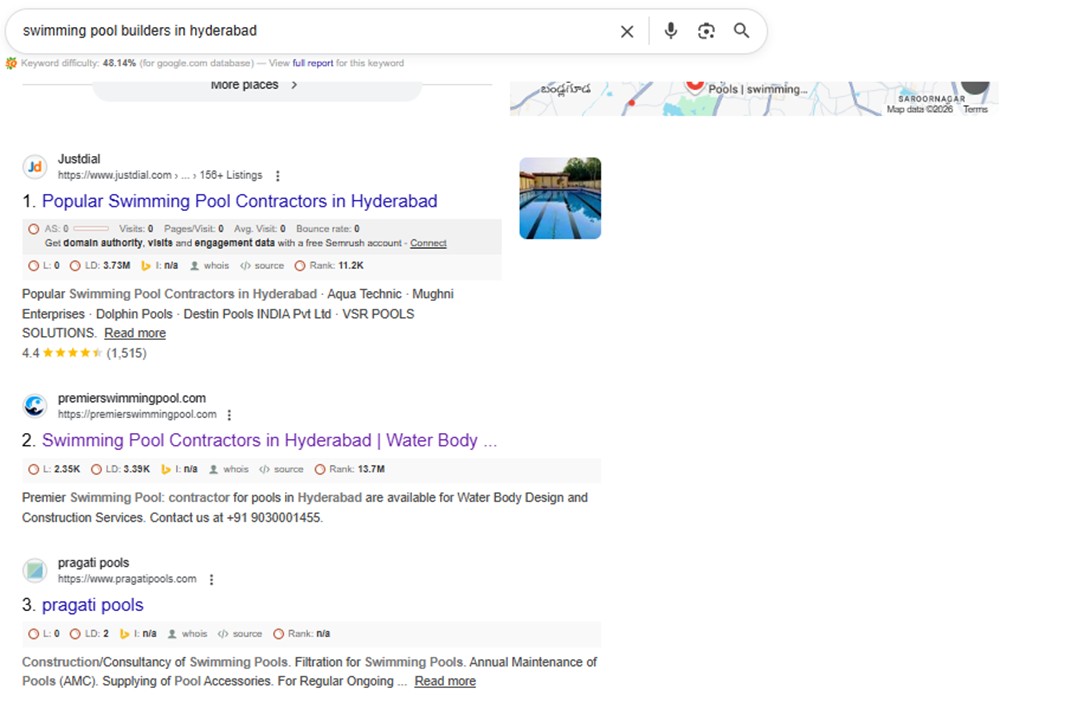 These efforts produced measurable growth in organic traffic, quality leads, and real estate project inquiries proving our expertise in SEO for swimming pool construction businesses.